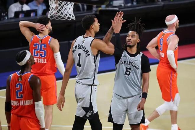 萬萬沒想到,前幾日眾多NBA媒體還在討論雷霆能否打破湖人的33連勝,今日馬刺就親手終結(jié)了這個(gè)話題,NBA杯半決賽,馬刺以111比109戰(zhàn)勝雷霆,晉級(jí)決賽,終結(jié)雷霆16連勝,本場過后,馬刺的戰(zhàn)績來到18勝7負(fù),超越湖人升至西部第四,湖人掉到第五。此外,馬刺球星文班亞馬全場出戰(zhàn)21分鐘,得到22分9籃板2助攻1搶斷2蓋帽,攻防兩端的統(tǒng)治力直接讓一些湖人媒體破防,賽后,湖人自媒體Purp Gold發(fā)文稱:“湖人球迷們,就我今晚所見,在很長一段時(shí)間里,我們可能都無緣總冠軍戒指了。”