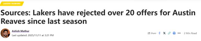 北京時間11月12日,湖人隊對奧斯汀-里夫斯極為重視。你可能會問,重視到什么程度?據(jù)《湖人日報》消息人士透露,自上賽季以來,湖人隊已拒絕了超過20份關(guān)于里夫斯的交易報價。